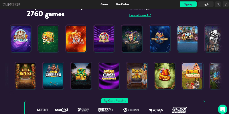 In order to give players with a rich and top-notch gaming experience, Dunder Casino collaborates with some of the top software developers in the business. The games available to players are from prominent developers like NetEnt, Microgaming, Play'n GO, and many others. This makes sure that the casino has a large selection of slots, table games, live casino games, and progressive jackpots in its game collection. The games offer fluid gameplay and great graphics for an engaging gaming experience since they are fully incorporated into the platform.