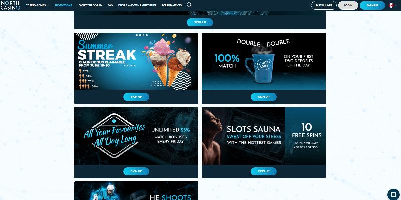 Offers: North Casino never disappoints when it comes to promotions. The platform offers new players a hefty welcome bonus package that gives them a head start in their gaming career. Regular players are also rewarded with a range of incentives, such as reload bonuses, cashback deals, free spins, and special VIP benefits. Because North Casino is committed to offering continuing promotions, gamers will always have something to look forward to.